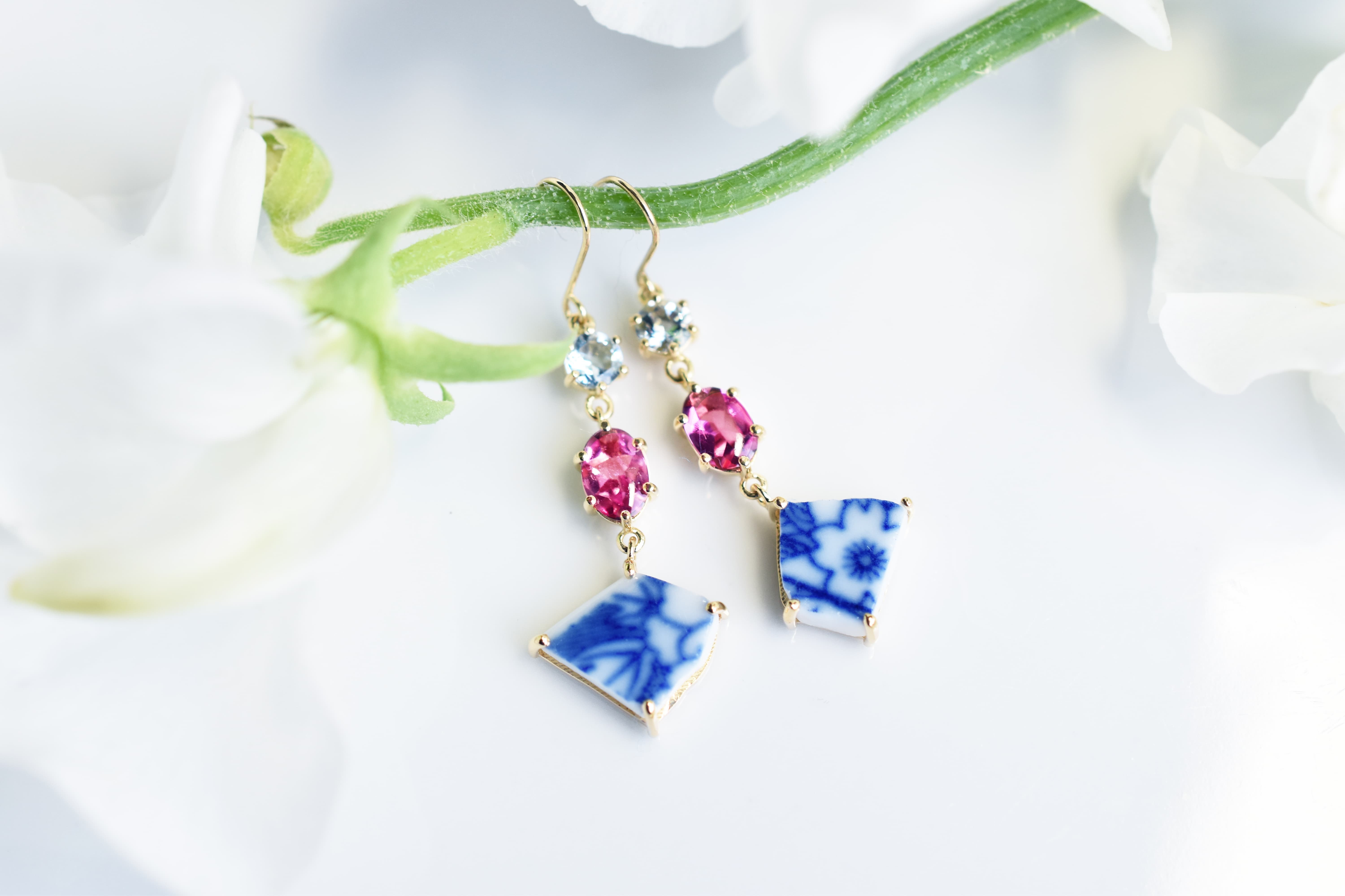 陶磁器 カラーストーンピアス陶磁器 カラーストーンピアス